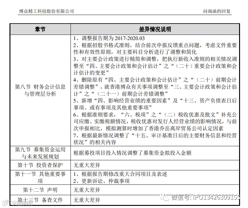 本次申报的报告期为 2017 年至 2020 年 3 月,前次申报的报告期为 2016 年至 2019 年 9 月 30 日,本次申报删除了发行人 2016 年财务数据,并将财务报表截止日更新至 2020 年 3 月 31 日,本次申报 2017 年、2018 年经审计的财务报表数字与前次申报无差异。