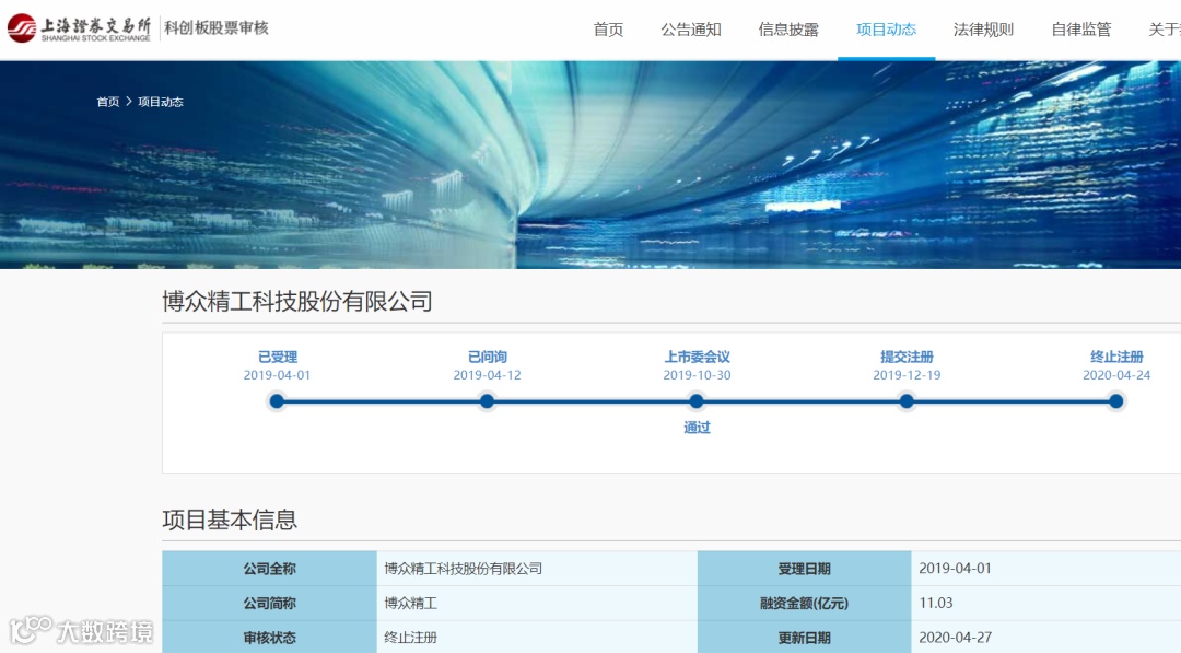 时间轴:2019年4月1日已受理、2019年4月12日已问询、2019年10月30日通过上交所上市委的审核,2019年12月19日提交证监会注册,最后2020年4月24日主动要求撤回注册申请文件