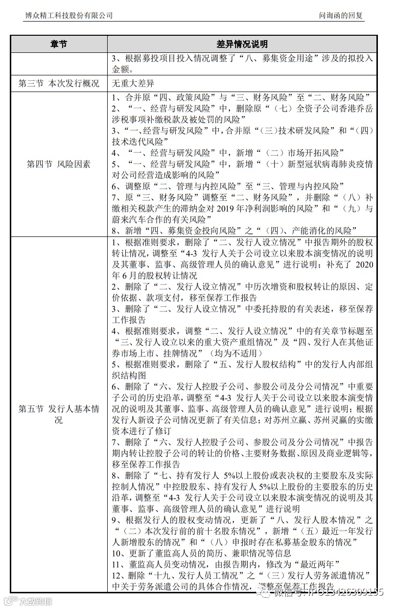 发行人前后两次申报文件所披露信息的主要差异体现在以下三个方面:
