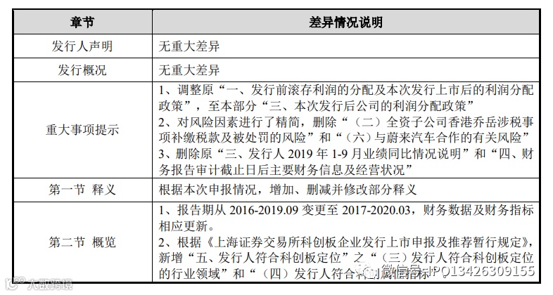 发行人前后两次申报的《招股说明书(申报稿)》的主要差异具体如下: