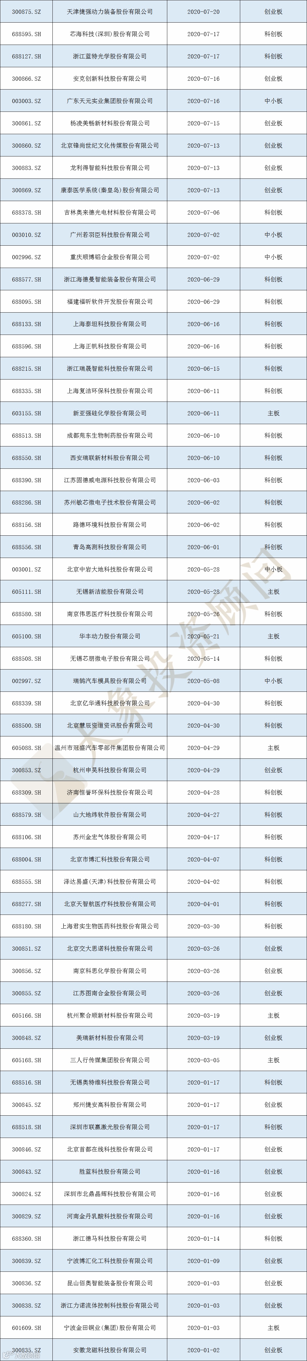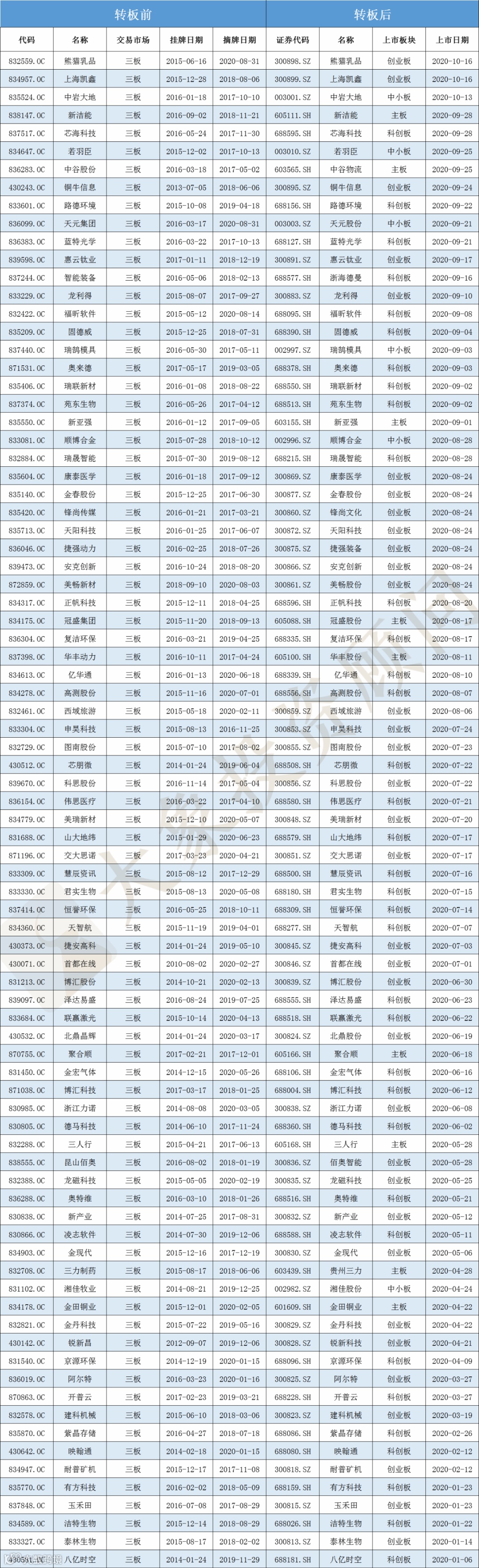 截至2020年10月19日,2020年共有84家企业成功“转板”。
