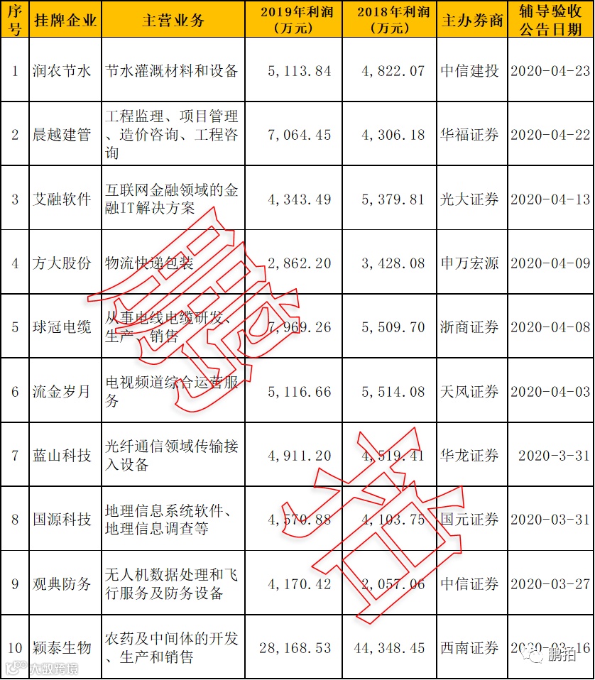 根据新三板公告检索,目前以下10家企业已经通过证监局辅导验收,大概率将成为新三板小IPO第一批申报企业。