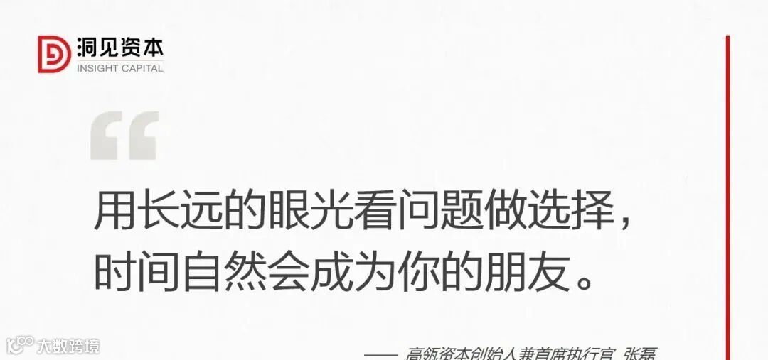 我关注的是创造多大价值的机会,这就是我说的深入基本研究,在这个过程中我们多年来一直坚持持续深入的跨时间、跨地区、跨行业、跨类别、跨线上/线下的行业研究,所以高瓴能够深刻理解这些行业的长期内在发展规律和业务逻辑,从而准确把握行业与市场的变革要素和时点。