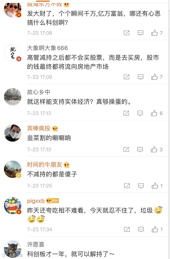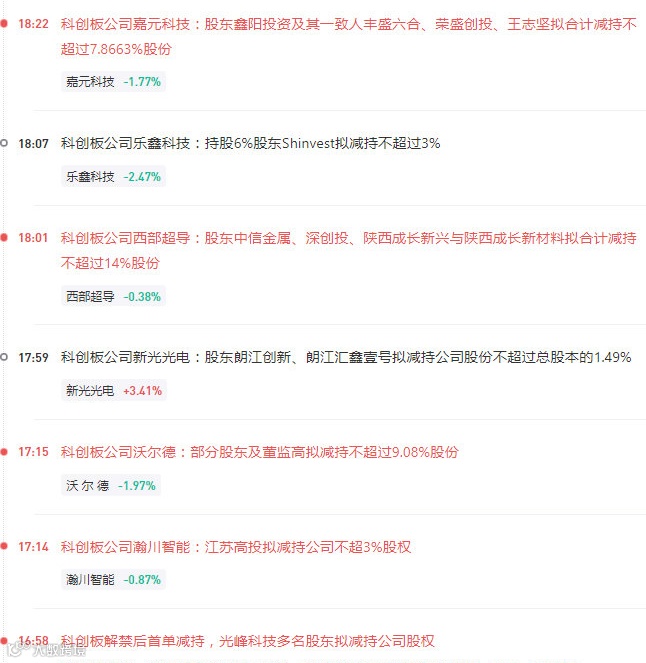 到了23日晚间,解禁后首批减持来了,多家科创板公司纷纷发布公告,公司股东准备减持了。截至发稿,有7家公司宣布减持。