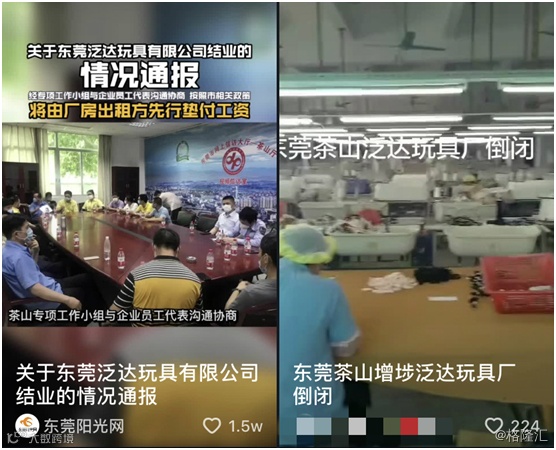 其中最典型的当属泛达玩具厂,这家玩具厂并不是小厂,而是一家成立28年,拥有1200多名员工,曾为迪士尼、孩之宝等世界知名企业供货的大型玩具制造商。