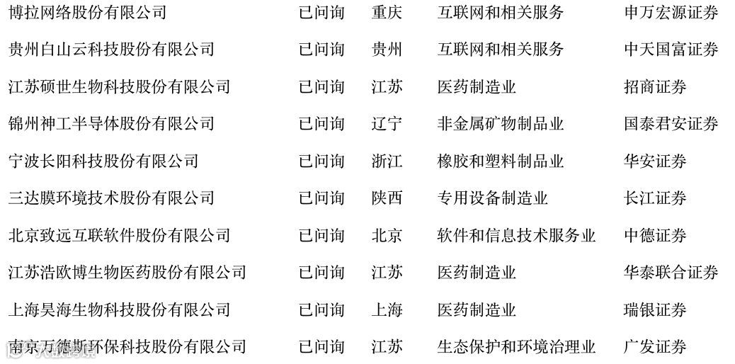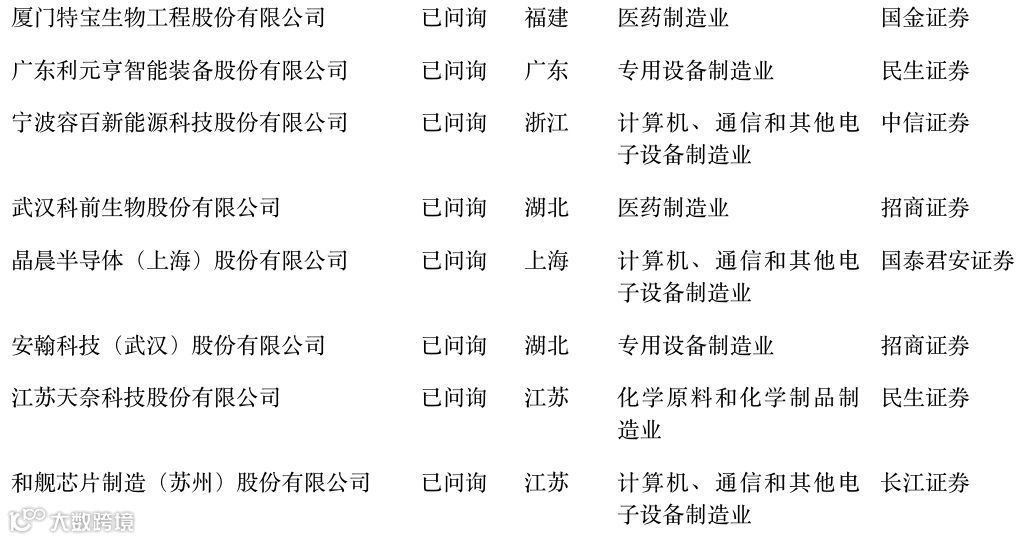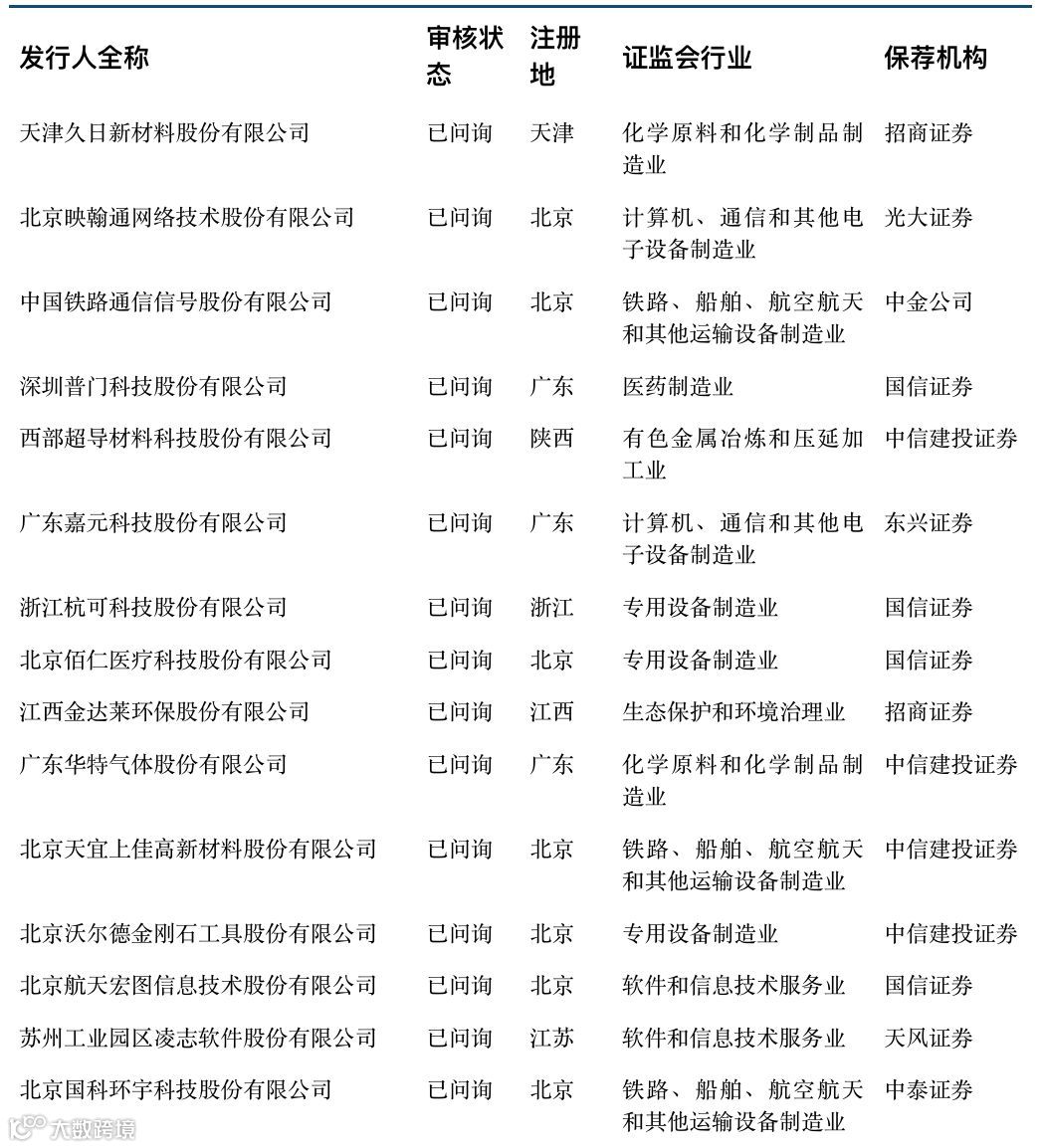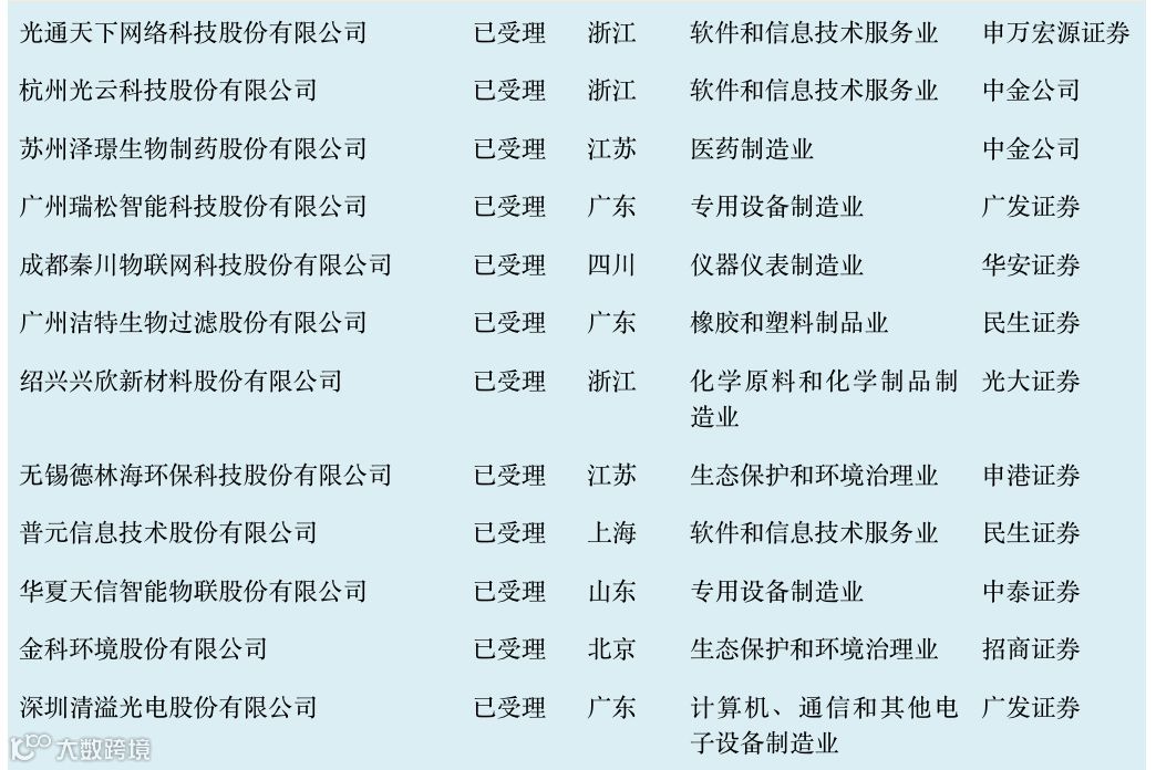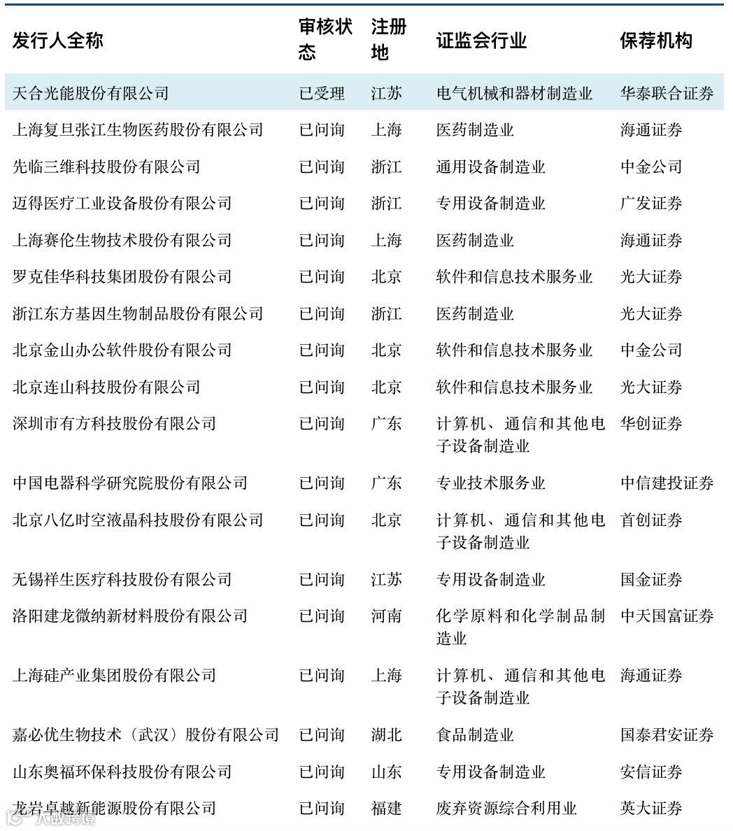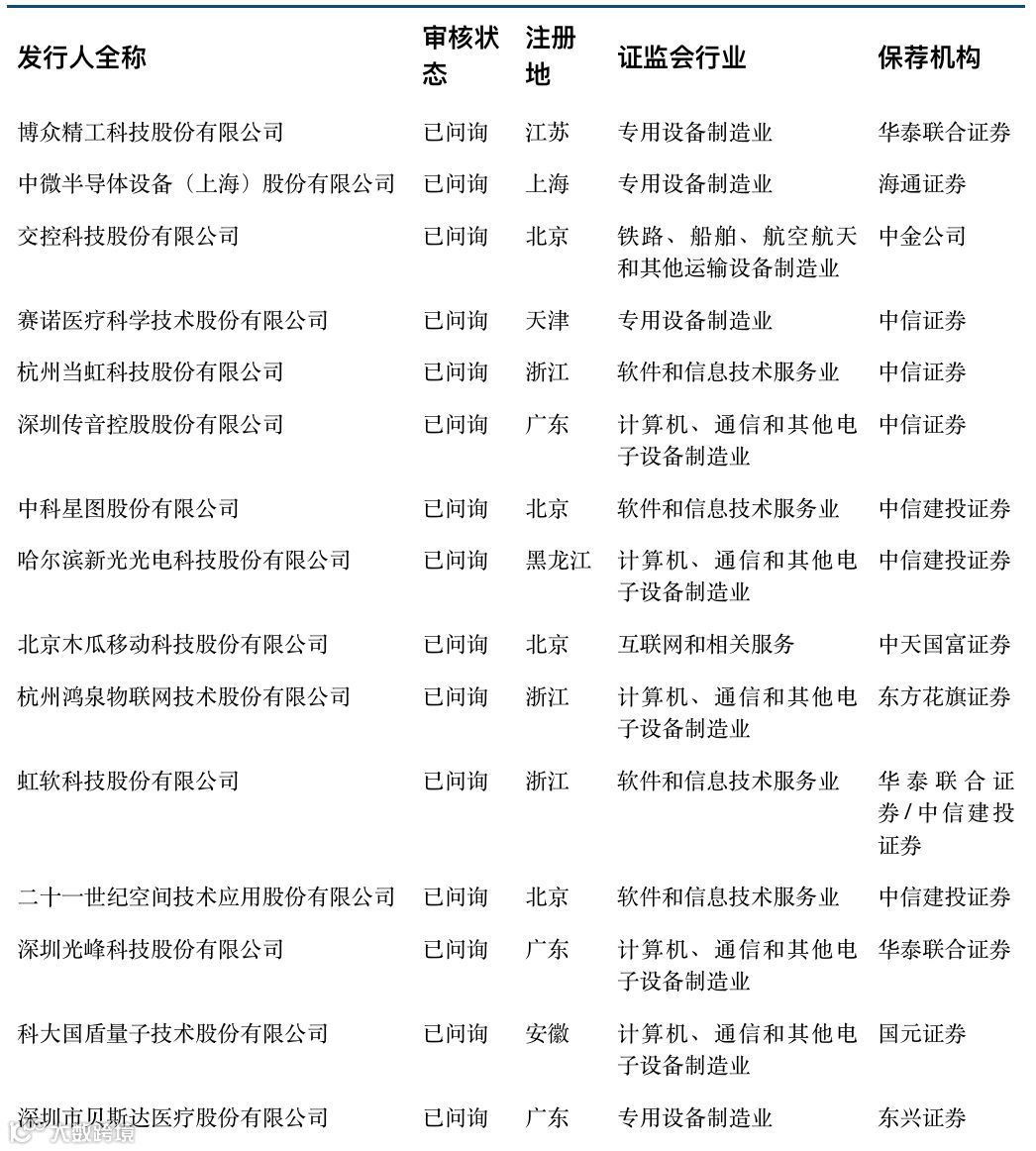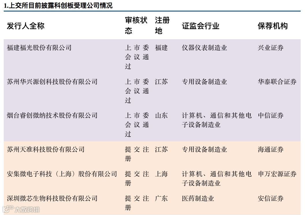 3家已提交注册,为天准科技、安集科技和微芯生物。3家科创板上市委会议已通过,为睿创微纳、华兴源创和福光股份。第三批、第四批、第五批、第六批、第七批及第八批科创板上会企业名单也已出炉,分别如下: