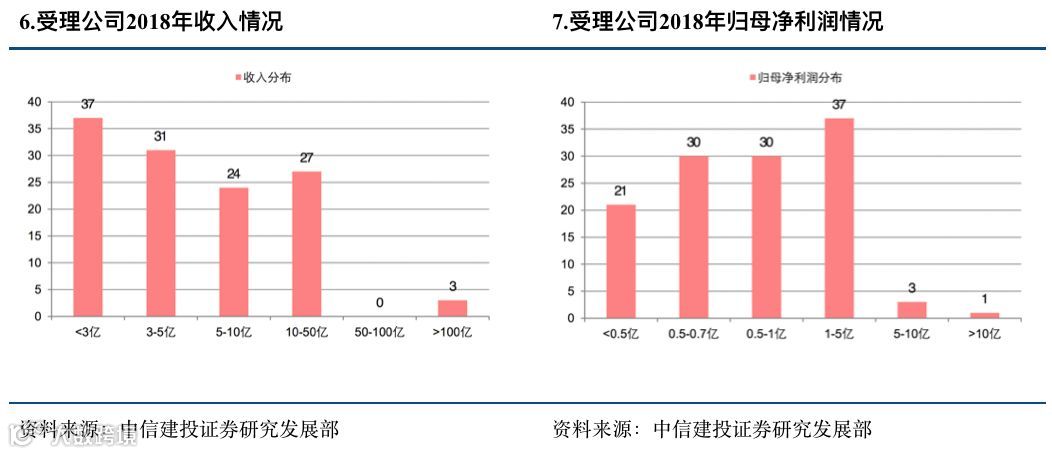 收入方面:2018年68家公司收入在5亿以下,24家公司收入在5-10亿之间,27家公司收入在10-50亿,3家公司收入超过100亿,为传音控股(226亿元)、中国通号(400亿)和天合光能(251亿)。122家公司2018年平均实现收入14.21亿元。