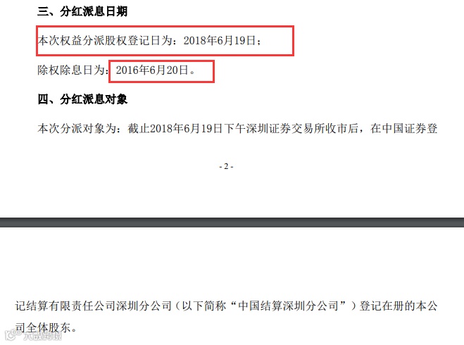 经纬辉开(300120.SZ),在2017年度权益分派实施公告中披露的权益分派登记日为2018年6月19日,但除权除息日却为2016年6月20日。经纬辉开也因为一系列的披露信息错误在当时收到了深交所的监管函。