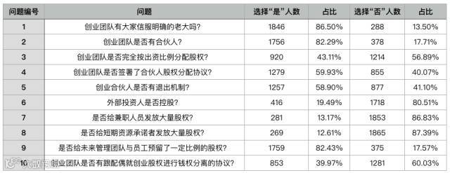 以下是我们的问卷与IT桔子收集到的创业企业股权体检数据: