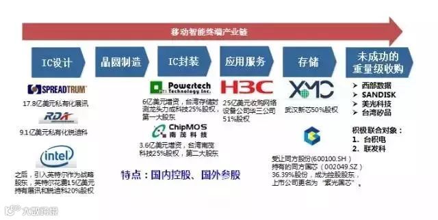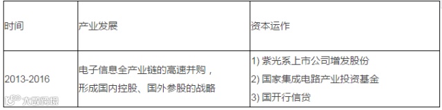 随着2014年9月,国家集成电路产业投资基金正式成立,紫光就在半导体领域开始了高速并购。紫光集团与国家集成电路产业投资基金达成合作协议,产业投资基金拟以股权投资方式给予紫光集团总金额不超过100亿元人民币的支持。2015年2月,国家开发银行与紫光集团签署开发性金融合作协议。国家开发银行与紫光集团在各类金融产品上意向合作融资200亿元等值人民币。2015年,紫光国芯(002049.SZ,原同方国芯)收购西安华芯半导体,进军国产DRAM储存芯片。
