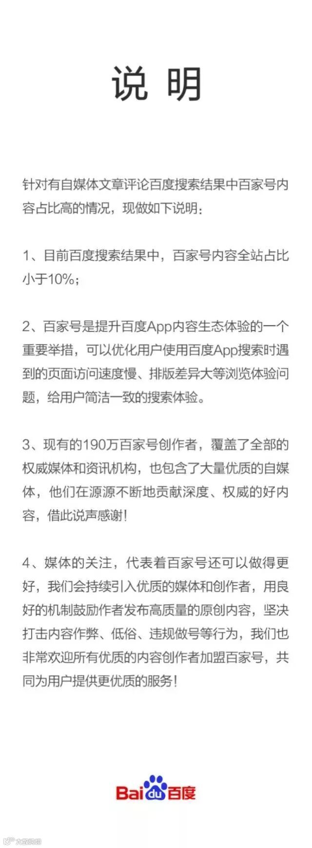 百家号是提升百度App内容生态体验的一个重要举措,可以优化用户使用百度App搜索时遇到的页面访问速度慢、排版差异大等浏览体验问题。现有的190万百家号创作者,覆盖了全部的权威媒体和资讯机构。