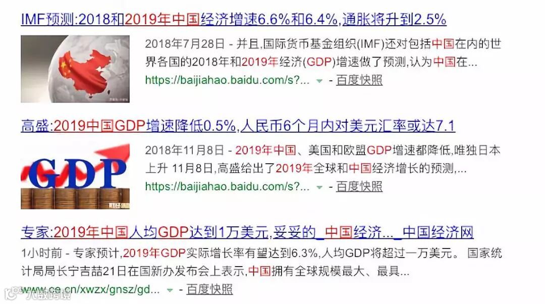 中国2019年的GDP数据昨天公布,我现在(北京时间1月22日上午10点)搜索“中国2019年GDP”,第1、2、4、5条结果全是百家号,其中没有一条能告诉我最新的数据,只有第3条中国经济网的结果是我要找的。