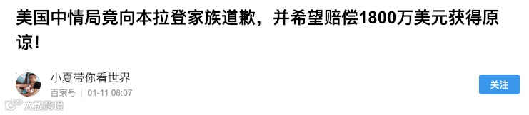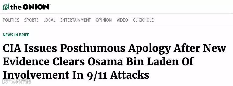 该文声称,美国中情局承认本·拉登和911事件无关,向其家族致歉。我搜索发现,这样的惊天新闻,原来是来自专门生产讽刺性假新闻的洋葱新闻。