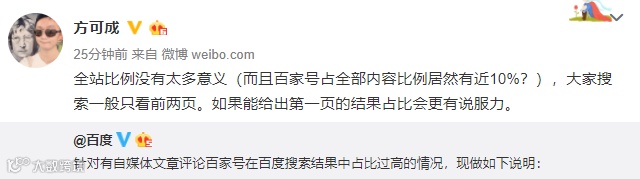 另外,对于前面百度的回应,他认为:如果能给出第一页的结果占比会更有说服力……