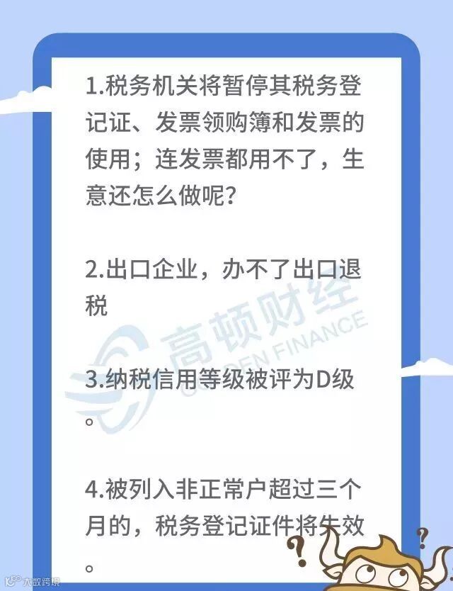 这里,小编要强调一下,如果你长期未申报,而且被纳入非正常户之后也不在意,到时候被吊销税务登记证,或成为“非正常注销”状态,那可就更麻烦了!