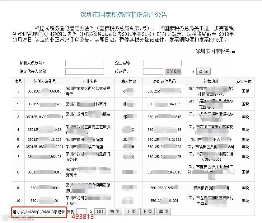 这不,截止到今天,深圳市国家税务局非正常户公告里就有493813家企业被列入“非正常户”!