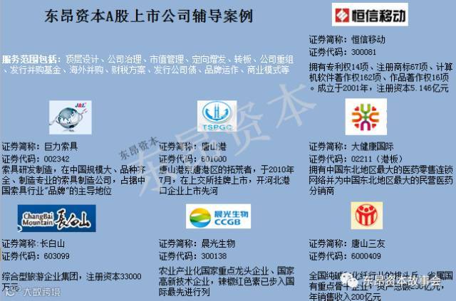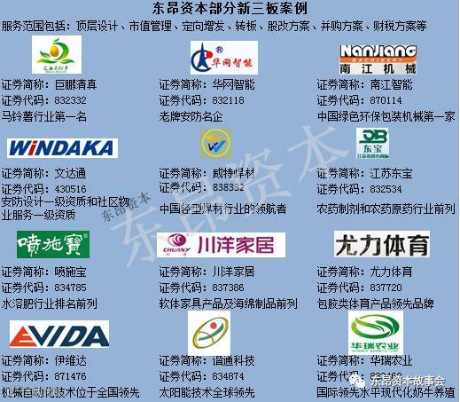 东昂部分A股上市公司、新三板成果