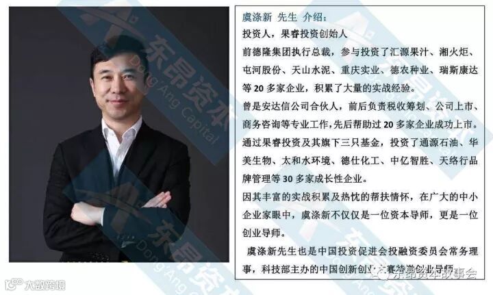 2017年12月9-10日,东昂投资“融资上市之路”将在杭州盛大开幕,果睿投资董事长、前德隆集团总裁虞涤新先生,楷誉金融合伙人,上海交大EMBA教授李军先生携手多位中国顶级资本运作专家,为来自全国的众多企业家分享中小企业融资及IPO上市的路径和实战方法。
