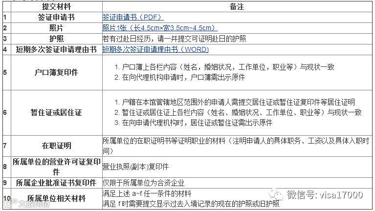 ▶持中国大陆护照的商务申请人及其家属的短期商务多次签证