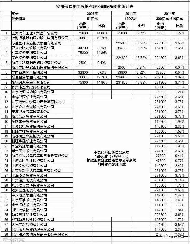 安邦保险集团股东分解