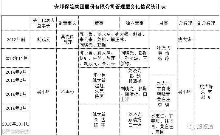 安邦保险集团管理层更换史