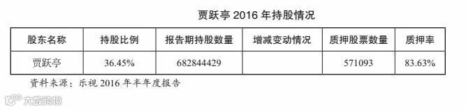 贾跃亭曾公开表态“股权质押是一个阶段性策略,不是长久之计,因为融资成本比较高”。但无论是运营还是投资,目前乐视的多个业务版块仍需要不断输血,股权质押还是成为乐视缓解资金压力的常规手段。2016年半年度报告显示,贾跃亭已质押股份占本人持股已超过八成,占公司总股本的 32.12%。