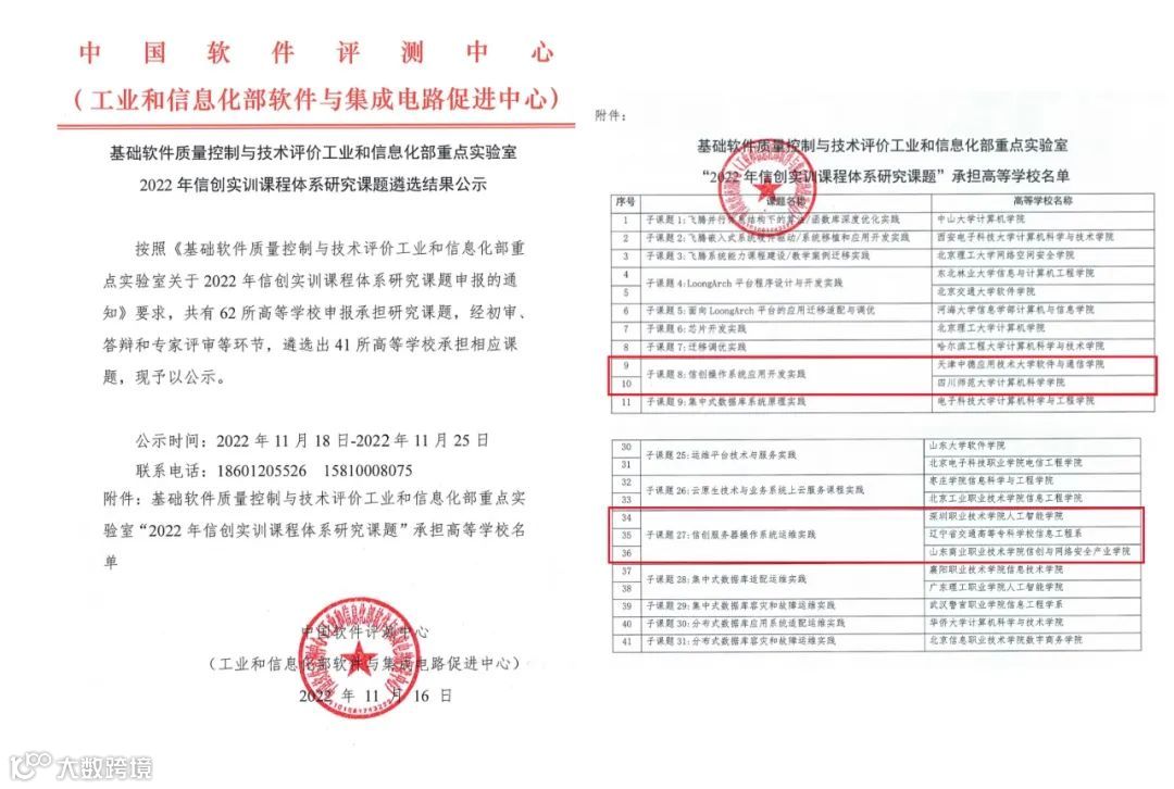 中国软件评测中心(工业和信息化部软件与集成电路促进中心)发布了《基础软件质量控制与技术评价工业和信息化部重点实验室 2022年信创实训课程体系研究课题遴选结果公示》。经过初审、答辩、专家评审等环节,遴选出41所高等学校承担相应课题。作为操作系统领域唯一入选的企业,麒麟软件深度参与课题共建,并同时为全部课题实训开发提供操作系统环境支撑。
