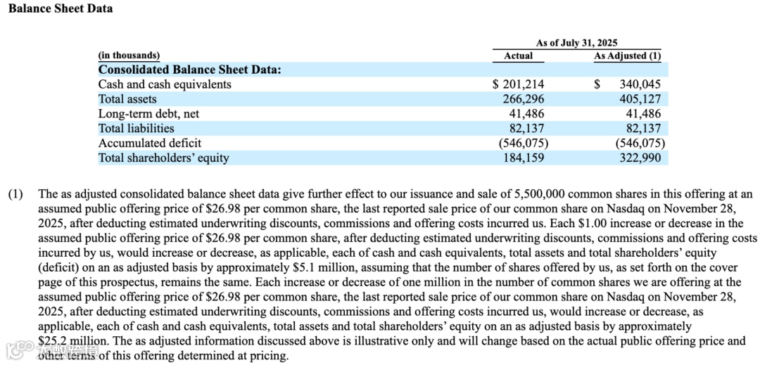现金流与资产结构方面,截至2025年7月31日,公司持有2.01亿美元现金及等价物;在本次募资完成后的“调整后口径”下,现金储备有望提升至 3.40 亿美元,为未来业务扩张、研发投入和供应链强化提供了充分的资本保障。