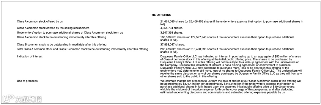 在募资层面,Figure 计划发行约 2,146 万股 A 类普通股,承销商可选择增发至 2,540 万股。发行完成后,公众股东将持有约 12.7% 的股份,其余仍由现有股东控制,公司也将在 NASDAQ 以股票代码 “FIGR” 上市。文件中显示,Duquesne Family Office 表示有意认购最高 5,000 万美元的股份,显示出部分机构投资者对公司模式的认可。募集资金预计净额约为 3.76 亿美元,公司计划将资金用于营运资金补充、技术研发、资本支出及潜在的业务拓展。