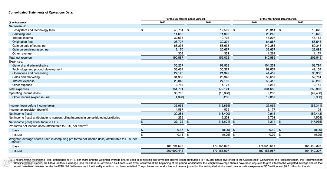 在财务表现上,公司保持了较快增长。2024 年净营收达 3.41 亿美元,净利润 2,000 万美元;2025 年上半年实现净营收 1.91 亿美元,净利润 2,938 万美元。相比传统金融科技公司,Figure 的收入结构中约 76% 来自贷款发放与服务费,其余部分来自技术授权与资产交易相关费用。值得注意的是,公司在持续扩张的同时仍存在累计亏损,截至 2025 年 6 月底累计亏损约 2.92 亿美元。