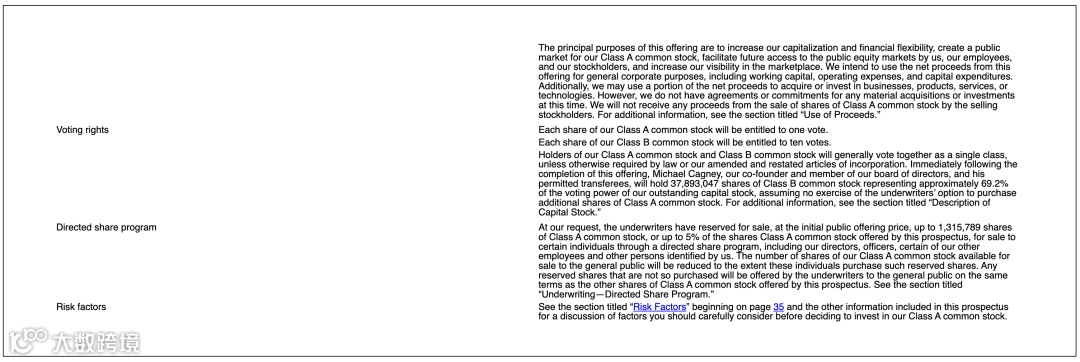 在股权与治理结构方面,Figure 将继续维持双层股权安排,创始人 Michael Cagney 通过持有的 B 类股份,将在上市后保留超过 69% 的投票权。这一“受控公司”架构在一定程度上保障了创始团队对公司战略的主导,但也意味着普通股东在治理参与度上的限制。
