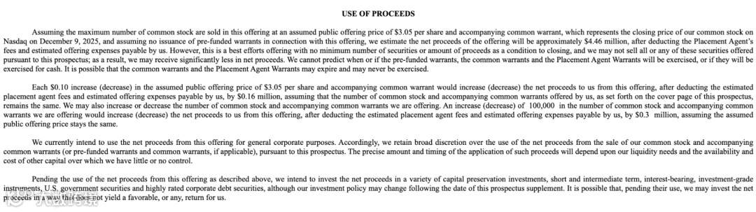 在资金用途方面,Actelis 表示,本次募集资金将主要用于一般公司用途,包括但不限于营运资金补充、业务拓展、产品研发投入、市场推广及潜在战略机会的支持。在具体资金分配上,公司保留较大的灵活性,以便根据经营节奏和市场环境动态调整资金使用方向。