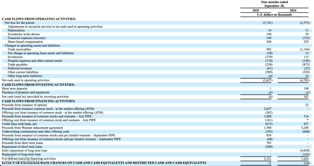 现金流层面,虽然经营活动现金流仍为净流出,但融资活动带来的净现金流入超过510万美元,主要来自ATM发行、PIPE融资及认股权证相关资金,显著增强了公司资本实力。整体来看,Actelis Networks 正在通过资本市场工具强化财务弹性,为其产品推广、市场拓展及长期增长奠定基础。