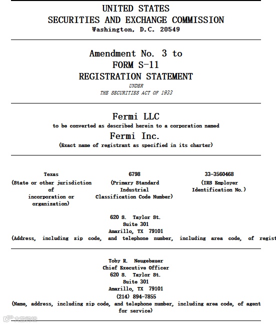 此次 Fermi 上市募资方案明确,公开发行 3250 万股普通股,发行价 21 美元,若承销商全额行使 30 天超额配售权(最多额外认购 487.5 万股),净募资额将从约 6.357 亿美元增至 7.33 亿美元。募资资金分配聚焦项目建设与长期发展,核心用于三大方向:一是长期设备采购,投入 3.25 亿美元用于购置涡轮机、反应堆核心部件等关键设备,为 “斗牛士项目” 各阶段能源产能落地提供硬件支撑;二是供电壳体建设,4500 万美元专项投入能源校园基础设施搭建,夯实电力传输与供应的物理基础;三是一般企业用途,预留 2.657 亿美元用于团队扩张、技术研发储备及日常运营周转,保障项目推进过程中的灵活资金需求。