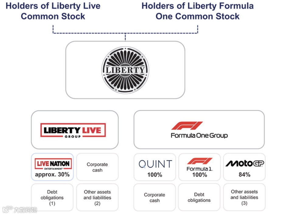 Liberty Media 是一家总部位于美国科罗拉多州恩格尔伍德的媒体与娱乐集团,主要业务涵盖顶级国际体育赛事运营、娱乐内容制作与投资管理。其核心资产包括 Formula 1 一级方程式、MotoGP 赛事主办方 Dorna Sports、Quint,以及在全球最大的现场演出和票务公司 Live Nation 的股权。公司采用追踪股(Tracking Stock)结构,即通过不同系列的普通股追踪不同业务板块的经营表现,其中 Formula One Group 和 Liberty Live Group 分别代表赛车与现场娱乐业务。尽管这些分组各自拥有独立的资产与负债结构,但并非独立法人实体,因此投资者并不直接拥有这些资产的所有权或表决权,而是对母公司整体承担风险与收益。