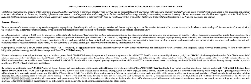 Green Circle Decarbonize Technology是一家成立于 1992 年的开曼群岛控股公司。该公司通过子公司Boca International在香港开展业务。,是全球为数不多的专门生产和应用相变材料(PCM)作储存热能技术的科技公司之一。数十年来,一直致力于开发实用,高效的相变热能存储技术。经过上万次实验公司才得以发明专利的宝加相变蓄能(BocaPCM-TES)系统和相关的生产专业技术,使能够将相变材料应用到暖通空调及制冷系统(HVAC)项目中。公司还开发了人工智能控制技术,进一步优化冷水机的运作。