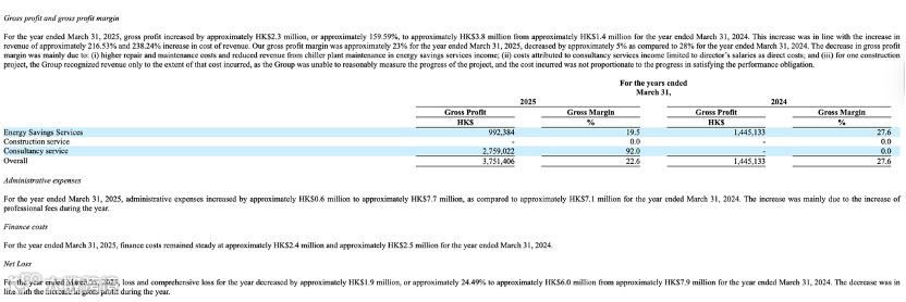 截至 2025 年 3 月 31 日和 2024 年,公司分别创造了约 1660 万港元和 520 万港元的收入。截至 2024 年 3 月 31 日的年度收入主要来自使用位于香港国际机场 HAECO 总部的超高效博卡混合动力冷水厂提供的节能服务。截至 2025 年 3 月 31 日止年度,收入主要来自 HAECO 项目、公司提供研发咨询的太阳能项目,以及与 LMP 国际有限公司合作的另一项目在 Bayview 花园购物中心的 BocaPCM-TES 系统,分别投资 510 万、300 万和 850 万港元。并且计划在香港、中国、韩国和中东地区推广和销售产品。