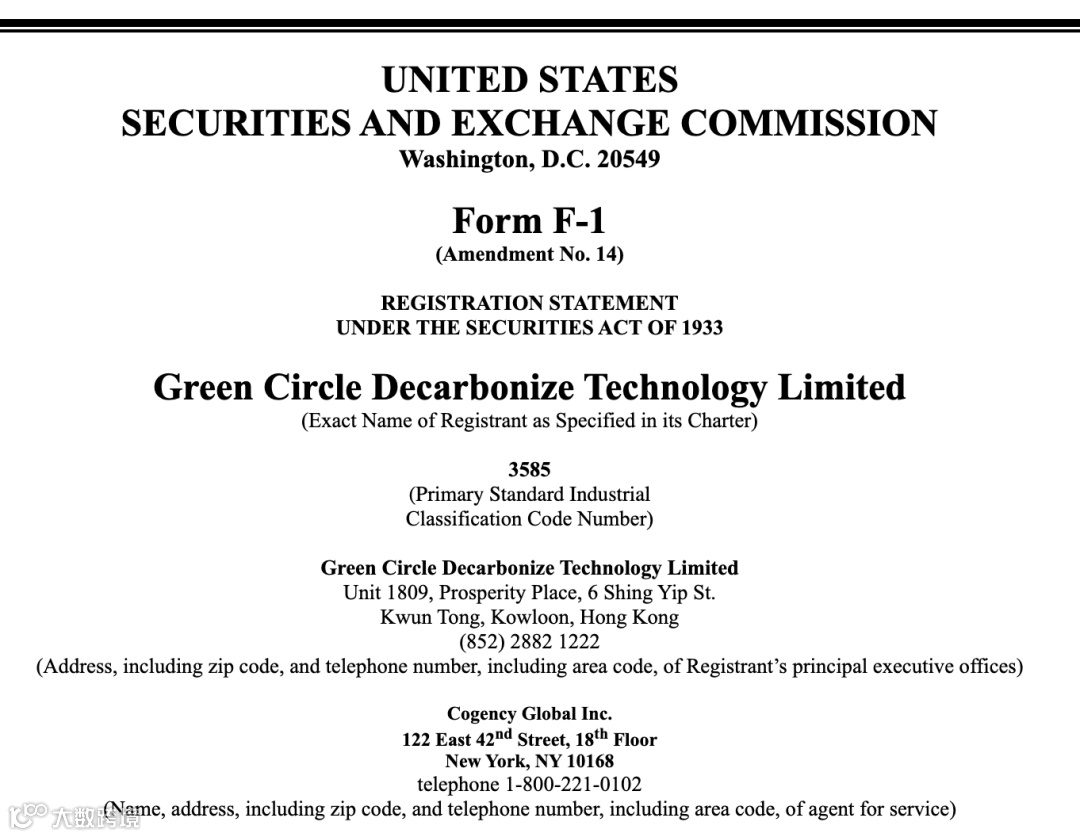 新型节能与脱碳技术企业Green Circle Decarbonize Technology申请纽交所上市,拟募资 1000 万美元