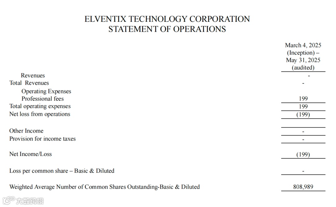 作为 2025 年 3 月才成立的初创公司,Elventix 目前处于 “投入期”,尚未实现营收,财务表现主要体现为初始资产构建与运营费用支出,符合科技初创企业的阶段性特征。