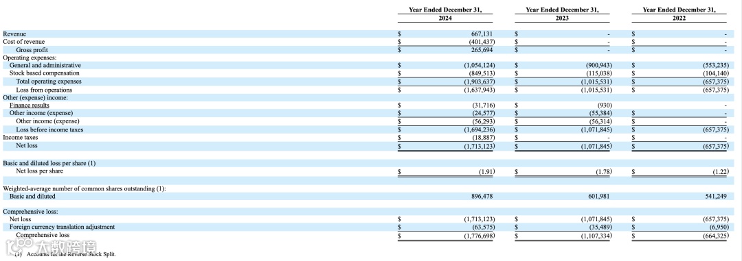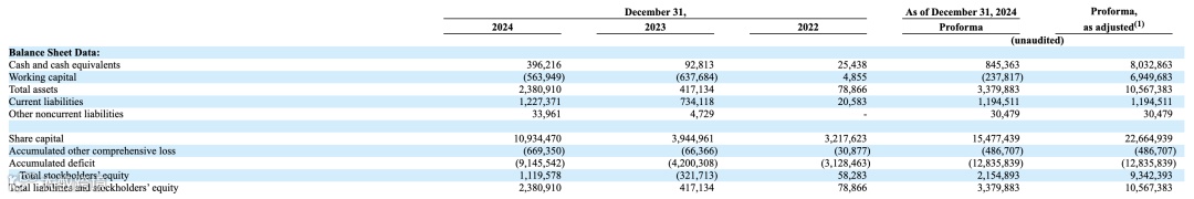 公司财务数据仍处于早期矿产开发型企业的典型状态。2024 年收入 667,131 美元,毛利 265,694 美元,但由于股权激励和管理开支增加,总运营费用达到 190 万美元,年度净亏损 171 万美元,较 2023 年亏损扩大 59.8%。截至 2024 年底,公司总资产为 238 万美元,总负债 126 万美元,股东权益为 111 万美元。值得注意的是,若考虑募资完成后的 pro forma 数据,公司股东权益将提升至 934 万美元,总资产超过 1.05 亿美元,财务结构显著改善。