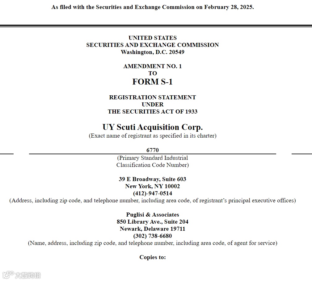 2025年2月28日,开曼群岛豁免公司UY Scuti Acquisition Corp.正式向美国证券交易委员会递交招股说明书。作为一家专注于亚洲市场的空白支票公司,此次IPO标志着该主体正式启动其资本市场征程。根据招股书披露的核心信息,我们为您梳理出这份特殊目的收购公司的战略布局与运作机制。