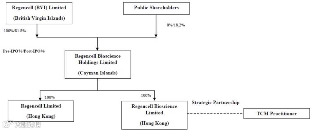 Regencell 采用典型的离岸架构,由设于英属维尔京群岛的 Regencell (BVI) Limited 通过开曼群岛控股公司间接全资持有两家位于香港的运营子公司。根据SEC披露信息,在IPO之前,Regencell (BVI) Limited 持有公司100%股权;IPO完成后,其持股比例降至81.8%,其余18.2%由公众股东持有,公司依然保持控股权不变。此外,公司还与一位中医药从业者建立了战略合作关系,进一步凸显其将传统中医药与现代生物科技相结合的发展模式。