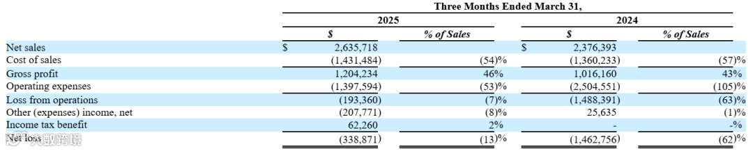 根据 S-1/A 文件,公司在 2024 财年实现收入 969 万美元,同比下降 12.6%,毛利润达 425 万美元,尽管收入小幅下降,但仍显示了其核心家具业务具备稳定变现能力;年度净亏损为 556 万美元,较 2023 年的 772 万美元明显改善,经营成本控制初见成效;截至 2025 年第一季度,公司实现收入 253 万美元,季度亏损进一步收窄至 34 万美元,同时处置非核心健康产品子公司 Jade Mat,聚焦主营家具赛道,优化资源配置与资产结构。