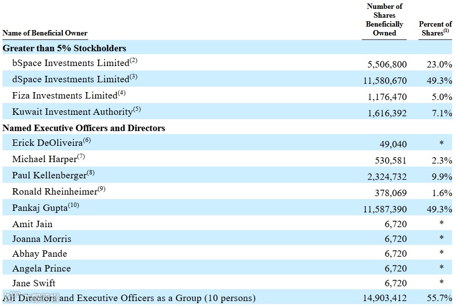 控制权方面,公司由三家开曼实体(Fiza Investments、dSpace Investments、bSpace Investments)共同控制,合计持股77.3%,具备“受控公司”地位(Controlled Company),未来可在董事会独立性等公司治理规则上享有豁免权利。