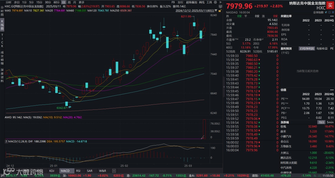 【2024/12/12—2025/03/11 纳斯达克中国金龙(HXC)数据】