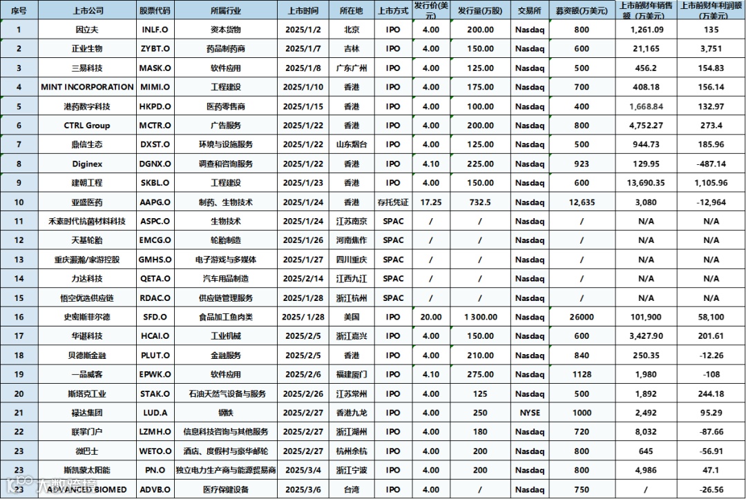 【2025/01/01—2025/03/12 中概股美股上市数据】