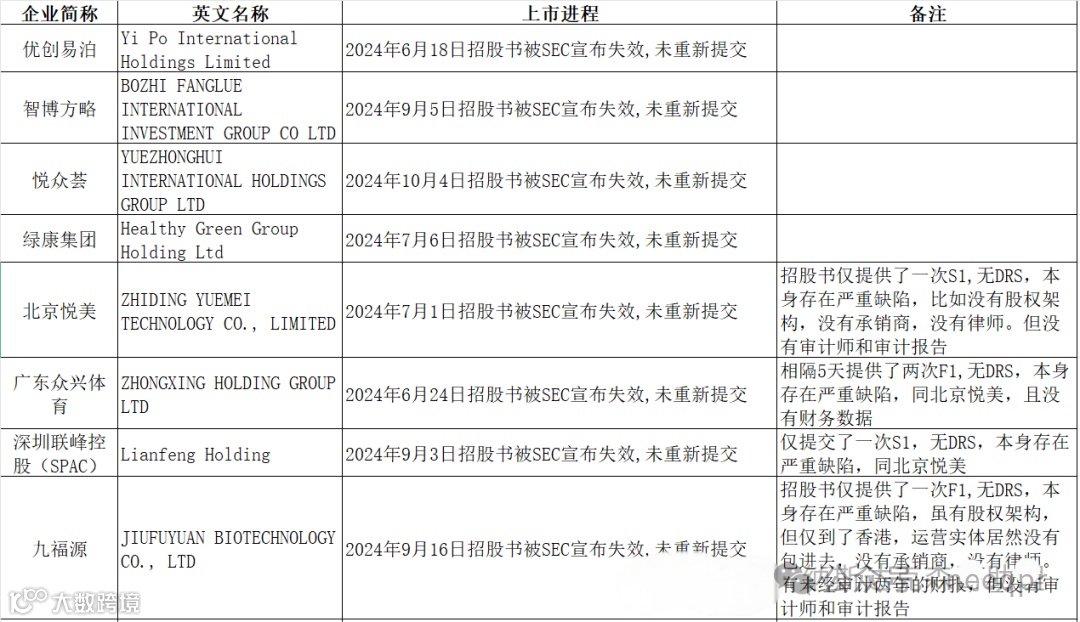24 家企业因招股书存在 “严重缺陷” 被 SEC 直接拒审,问题包括虚构上市架构、财务数据无审计、未聘任何中介,甚至出现篡改他人招股书的低级造假;16 家企业的招股书 “带病拖审” 超 9 个月后自动失效,SEC 虽未公开点名,但业内直指其 “漏洞明显到懒得回复”。