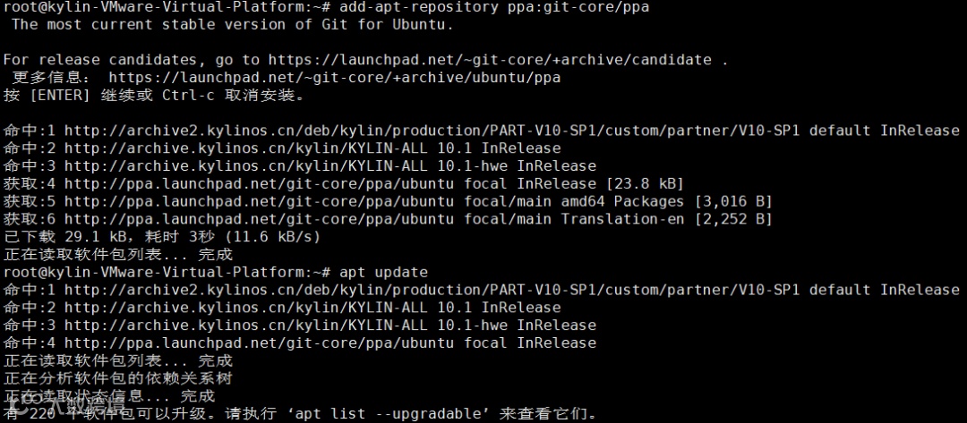 root@kylin-VMware-Virtual-Platform:~# add-apt-repository ppa:git-core/ppa