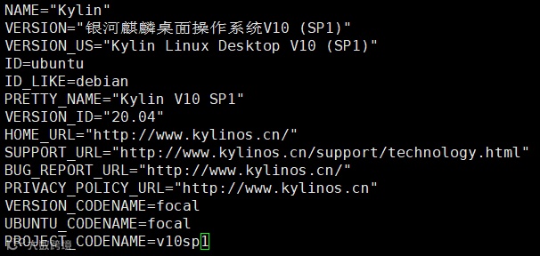 由于银河麒麟桌面操作系统中Distributor ID和Codename与Ubuntu不一致,此处需要做对应修改,分别修改/etc/lsb-release和/usr/lib/os-release。此例中,使用的银河麒麟桌面操作系统版本为2107 hwe,对应的Ubuntu版本为20.04,自带git版本为2.25。