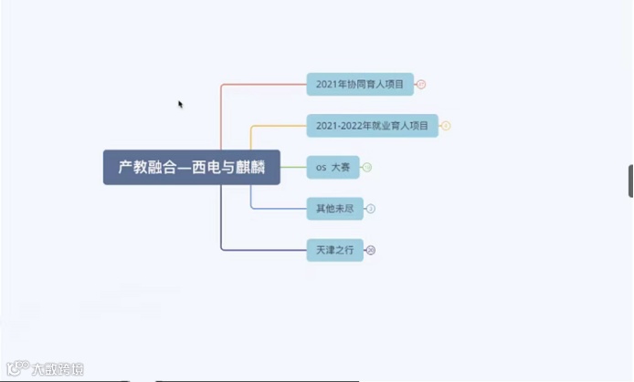 麒麟软件有限公司胡海江总监则针对西电-麒麟的产教融合发展历史、内容、未来做了介绍。谈到2021年麒麟与西电签署了两项教育部协同育人项目和一项就业育人项目,从社会实践、暑期实践、校园招聘三个维度建立了就业实习基地。同时期待暑期在天津总部的实践交流互动能够取得圆满成功。
